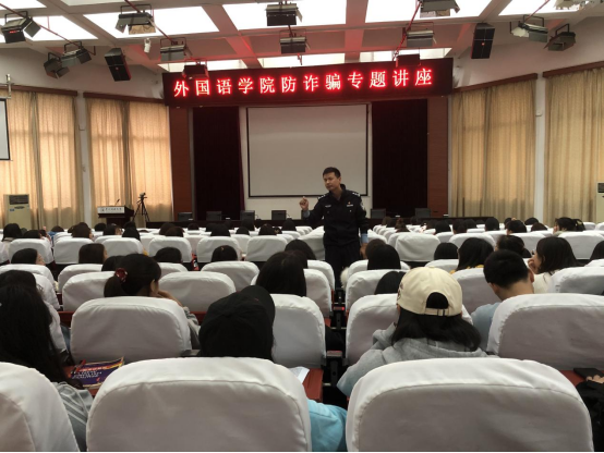 赵警官结合近期发生的真实案例和我校学生受骗的典型案例,列举了短信诈骗、电话诈骗、网络诈骗等诈骗类型,讲述了刷单诈骗、冒充客服及公检法诈骗、贷款诈骗等多种诈骗形式,形象生动地阐述了诈骗形成的根由及其对自身、社会造成的巨大危害和恶劣的影响,要求广大学生提高防范意识,告知同学们如遇电信或者网络诈骗要采取不理会或者举报的方式,切莫因贪小便宜的心理而遭受损失。并希望听讲座的师生将讲座内容传达给自己所在班级、周围同学及家人朋友,做好宣传工作,提高防范意识和能力。