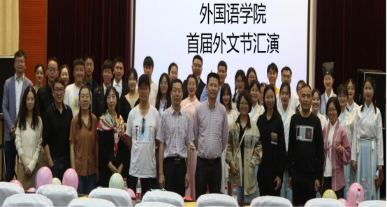 在中国共产党成立100周年之际,外国语学院全体师生于2021年5月8日晚19点至22点,在花溪校区15号楼圆形会议中心成功举行了首届“外文节”文艺汇演活动,用外语(英语、日语、德语、法语)演绎传统文化、讲述党的故事、表演红色剧目。当晚莅临会场指导的还有校党委宣传部副部长邹璿老师、校党委学生工作部舒启佳老师等。