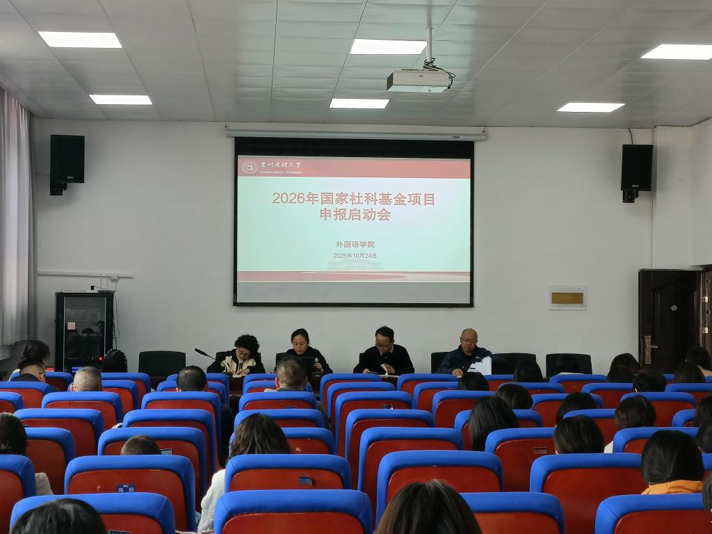 2025年10月24日下午,外国语学院在416会议室召开2026年国家社科基金项目申报启动会,学院全体教师参加。会上,学院院长张广勇传达了近期学校召开的国家级项目申报和科研平台、科研团队高质量发展专项调度会的会议精神,汇报了2025年学校及国家级科研项目立项的整体情况,深入分析了学院在国家级科研项目申报和立项方面面临的问题和存在的机遇。